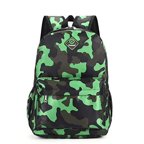 Estwell Skolryggsäck för barn, pojkar och flickor, kamouflage, väska för grundskolan, bokväska, vattentät, nylon, ryggsäck, vardagsväska., gRÖN, L