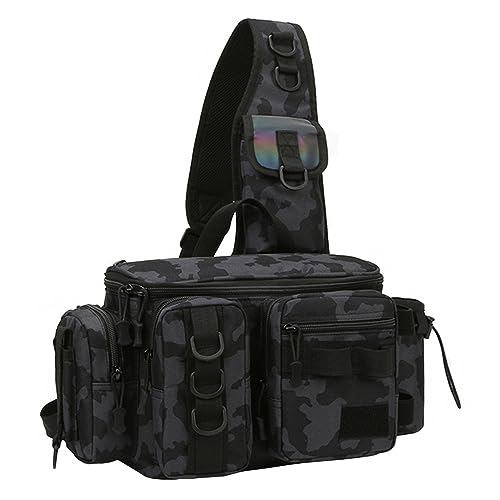 YUEMING Fiskeväska, enkel axel havsfiske, tackelväskor förvaring ryggsäck för karpfiske, kamouflage utomhus bärväska vandring resor pack, Svart, NEJ