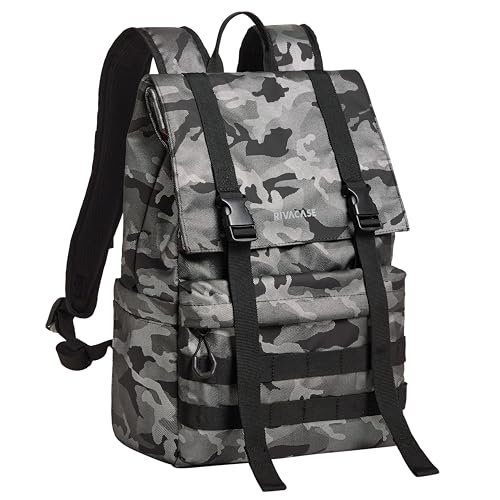 Rivacase 7621 Rolltop ryggsäck 15 l kamouflage, vattenavvisande, laptopfack upp till 15,6 tum, reseryggsäck för universitet arbete, sport och utomhus, Grå camo, 15L