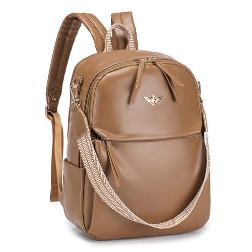 BAGZY Handbagage Ryggsäck 40x30x10 Lufthansa Damer Vattentät 14 Tums Laptop Ryggsäck Elegant Dagsryggsäck Väska 2 i 1 Ryggsäck Kvinna PU Läder Arbetsväska Affärsresor Skolryggsäck Khaki