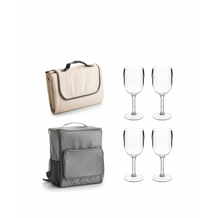Kylväska ryggsäck + picknickpläd 140x200 cm + picknickglas