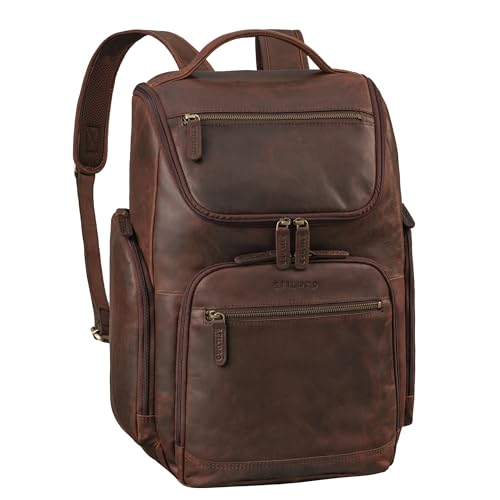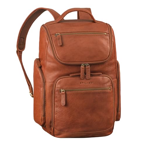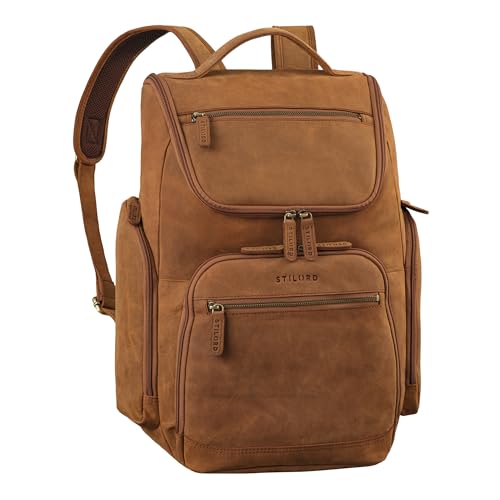 STILORD "Harlow" läderryggsäck för män XL affärsryggsäck laptop ryggsäck 15 till 17 tum stor arbetsryggsäck med många fack och vagn fästsystem vintage äkta läder, Zamora – brun, L, Ryggsäck