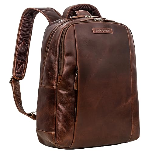 STILORD "Ennio" Modern ryggsäck för bärbar dator 15,6 tum äkta läder för män och kvinnor läder för studenter, kontor och resor ryggsäck med laptopfack Farbe:Sonora-konjak