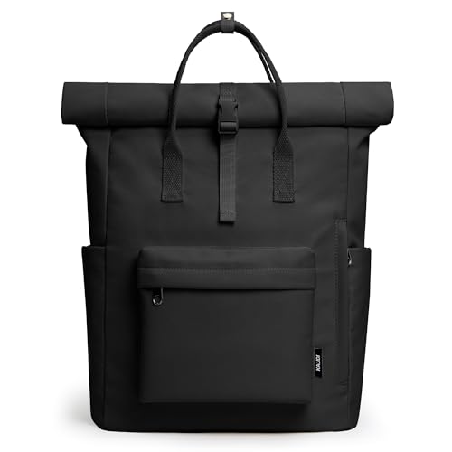 KALIDI Ryggsäck damer ryggsäck män dagryggsäck med laptopfack, unisex modern rolltop ryggsäck dagväska, vattentät skolryggsäck, avslappnad ryggsäck skola fritid universitet arbete, svart, Einheitsgröße, ryggsäck