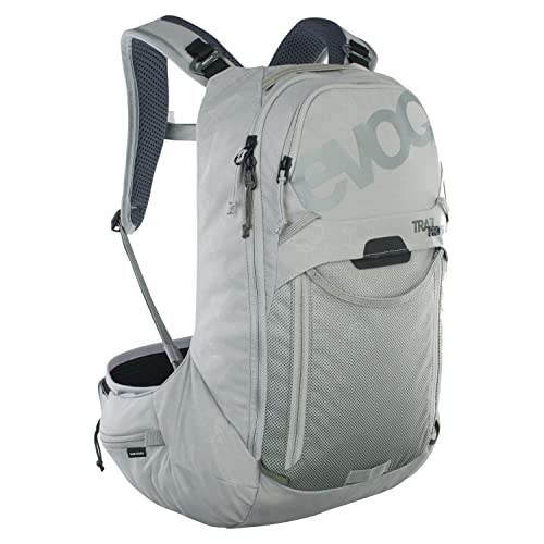 EVOC TRAIL PRO SF 12l ryggsäck för stigcykling och tävling, ryggsäck (lätt cykelryggsäck, LITESHIELD PLUS ryggskydd, 2l vätskeblåsfack, storlek: XS), stengrå