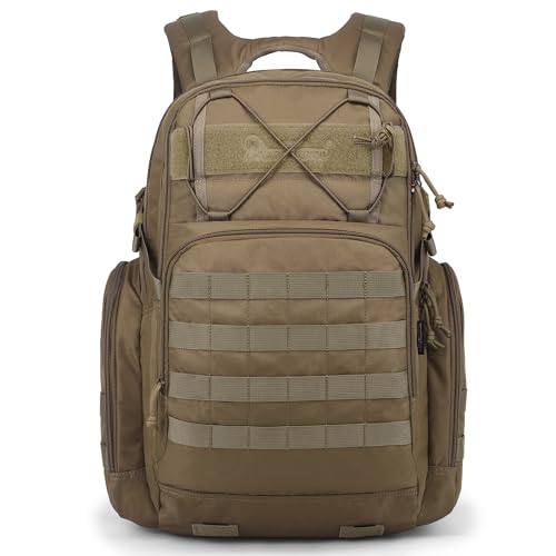 YuanWen 50 L taktisk ryggsäck, militärryggsäck med MOLLE-system, vattentålig vandringsryggsäck för utomhusvandring cykling resor och camping, 17 tum laptopfack vätskekompatibel kaki, Khaki