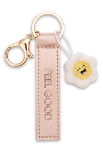 Nyckelring ”Feel good” läderrem i konstläder 10cm med blomma - ljusrosa - En trogen följeslagare för ryggsäck eller väska, nyckelring för alla åldrar | 62009