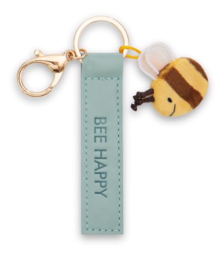 Nyckelring ”Bee happy” läderrem i imitation 10cm med bi - turkos - En trogen följeslagare för ryggsäck eller väska, nyckelring för alla åldrar | 62000