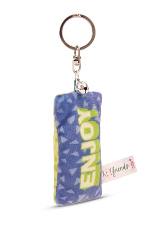 Nyckelring mini plyschkudde ”Enjoy” 8cm med klocka - färgglad - En trogen följeslagare för ryggsäck eller väska, nyckelring för alla åldrar | 62096