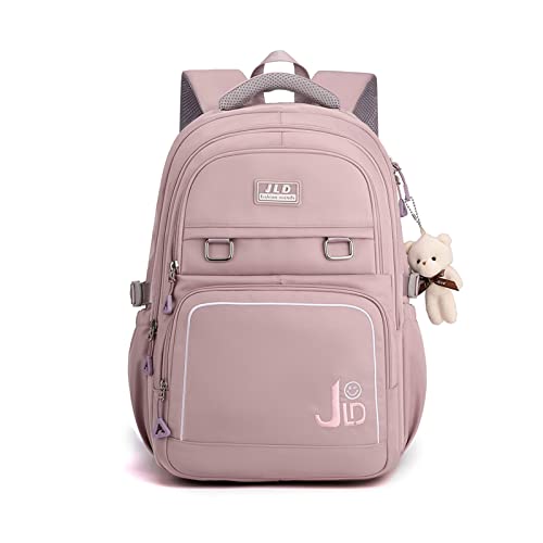 FANDARE Skolryggsäck skolryggsäck ultralätt dagryggsäck barnryggsäck skolväska pojkar flickor ryggsäck skolväskor utomhus resa dagpacks med plysch hänge vattentät nylon, violett, L, Avslappnad