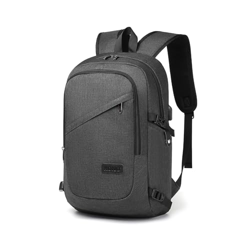 Kono Laptop Ryggsäck Stöldskydd Resa Affärer Dator Ryggsäck Arbetsväska med USB-laddningsport Lätt Laptopväska Vattentålig Skola Ryggsäck Väska för Män Kvinnor Passar 15,6 Tum (15,6"–Mörkgrå)