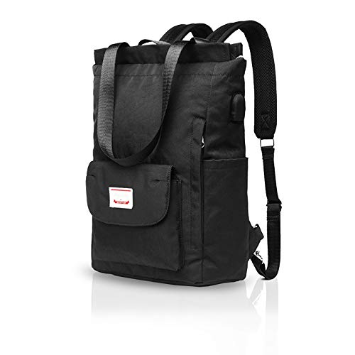 WEPLAN Laptop Ryggsäck Dam 15.6 tums Vattentät Skolryggsäck Tonåring Flicka Skolväska College Avslappnad Resa Ryggsäck för Kvinnor Män Arbete Ryggsäck för Bärbar Dator med USB-laddningsport, Svart