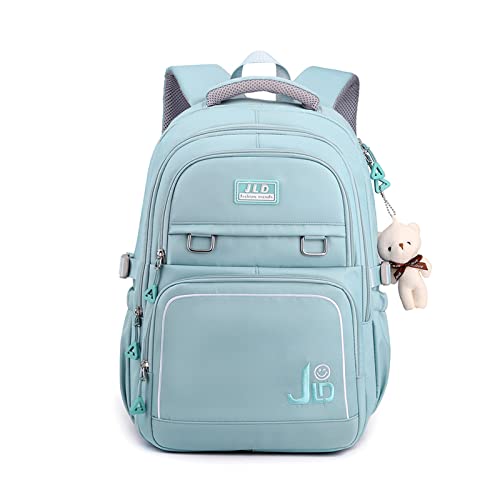 FANDARE Skolryggsäck skolryggsäck ultralätt dagryggsäck barnryggsäck skolväska pojkar flickor ryggsäck skolväskor utomhus resa dagpacks med plysch hänge vattentät nylon, blå, L, Casual, Urban