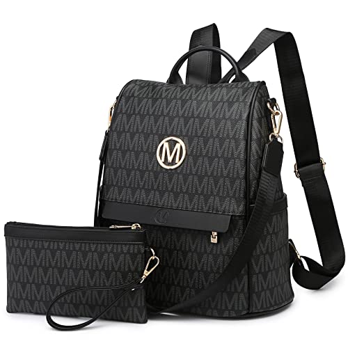 MKP kvinnor mode ryggsäck handväska flera fickor signatur stöldsäker ryggsäck resa skola axelväska handväska armband, Svart, 11.8"L x 5.5"W x 14"H, Bärbar dator