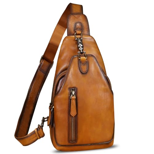 Genuine Leather Sling Bag Crossbody Purse Motorcycle Bag Handmade Hiking Daypack Retro Shoulder Backpack Vintage Chest Bag (Brown)