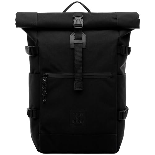 tomtoc Roll Top Laptop ryggsäck, lätt, vattentålig pendling expanderbar vardaglig dagväska, Svart, 25-30L, Roll Top laptop-ryggsäck