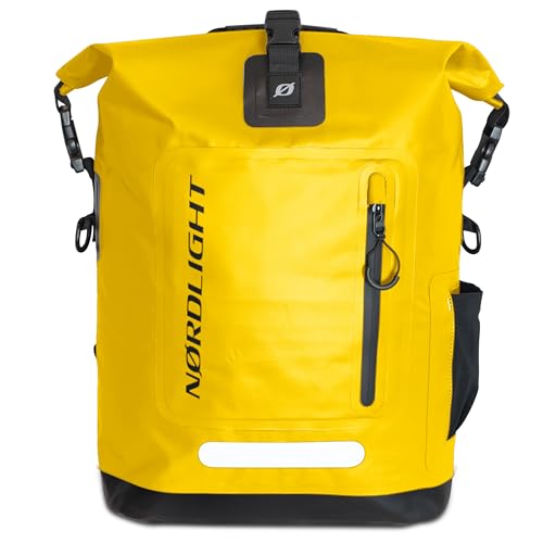 Nordlight vattentät ryggsäck Roll Top 25L - "Hybrid 25" (Gul) | Ryggsäck med 15-tums fack för bärbar dator, ytter- och innerfickor | Utomhus, resor, arbete, fritid