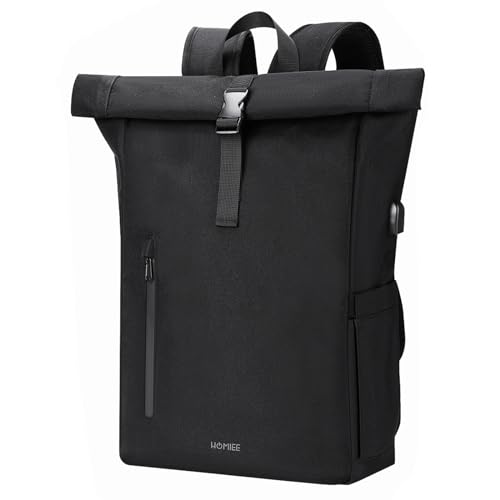 HOMIEE Roll-Top ryggsäck för män och kvinnor, 17-tums 24–30 L expanderbar bärbar dator ryggsäck för 17,3 tum bärbar dator, fritidsryggsäck, svart, 17 Pouces