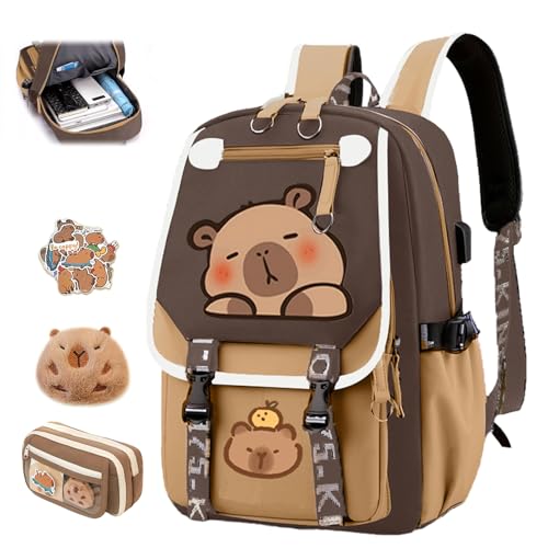 Generisk Capybara ryggsäck för skola barn flickor pojkar, skolryggsäck med djurmotiv och stort förvaringsutrymme, lätt vattentät skolväska, Ligger på bordet (med pennficka), 30 X 21 X 44 Cm