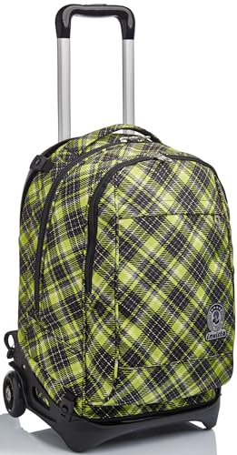 Invicta Rolling backpack, NEW Tech TARTAN Wheeled Book Bag, 3 in 1, Detachable Backpack + Trolley, for Teen, Girls&Boys, For School, Sport, Free Time, Laptop Sleeve, Italian Design, green