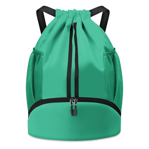 BROTOU Gymnastikväska fotbollsväska ryggsäck med dragsko justerbar dragsko gymväska vattentät sportväska för män kvinnor barn ungdom, Minegrön