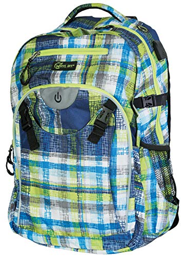 Wheel-Bee Skolryggsäck generation Z, LED-lampa för säkerhet och synlighet, trendig ryggsäck, USB-port, hörlursutgång, många fack, valbara, Generation Z – design: Blågrön-vit, 46x32x20 cm, Generation Z