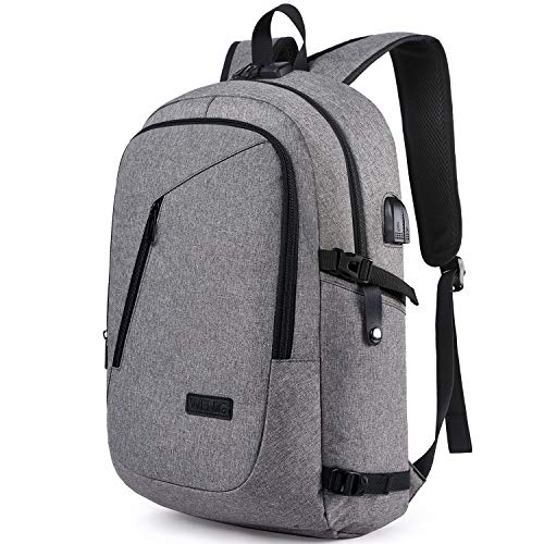 WENIG Laptop ryggsäck herr, 17 tum laptop anti-stöld ryggsäck väska skolryggsäck business notebook ryggsäck vattentät med USB, present till män, arbete resor elever pojkar tonåring grå