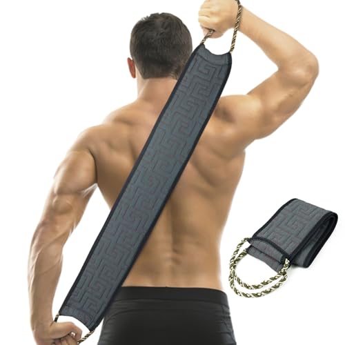 LOPHE exfolierande ryggskrubb för dusch, 34 tums ryggskrubb med handtag, dubbelsidigt kroppsexfolierande badverktyg, exfolierande tvättlapp för att skrubba din kropp djupt för män och kvinnor (blågrå)