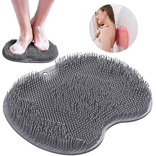 Halkfri silikonmassagedyna, ryggskrubb, massagerengörare med halkfria sugkoppar, peeling massageapparat för ryggen – ren, peeling, masserar ryggen (grå)