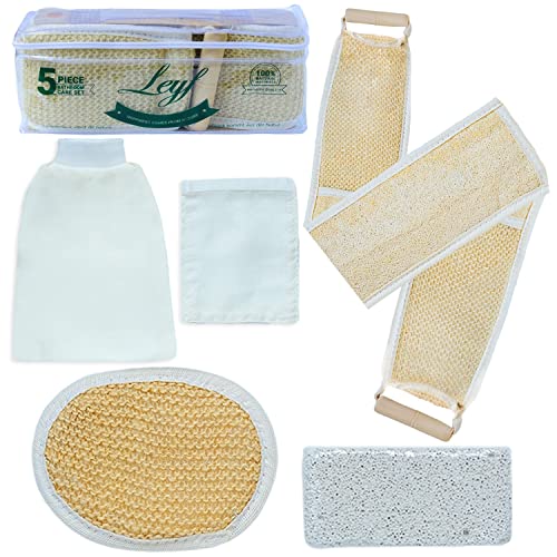 LEYF Luffasvampar, ansikte och kropp exfolierande handske, ryggskrubb, pimpsten, 5 i 1 badpeeling och kropp rengöringsset 100% naturlig och hög kvalitet/Hammam – kese