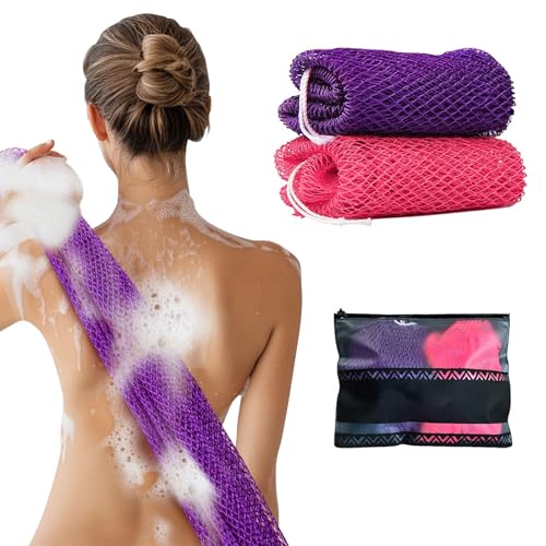 LOPHE ryggskrubber för dusch, dubbelsidig ryggskrubb med handtag, växtfiber exfolierande luffa-rem, kroppsexfolierande badskrubb (2PCS)