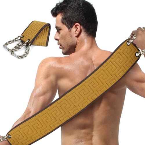 URAQT exfolierande ryggskrubb för dusch, 37 tums ryggbricka med handtag, mjuk duschbadskrubb för kvinnor och män, dubbelsidig exfolierande tvättlappsbadverktyg för att skrubba din kropp djupt