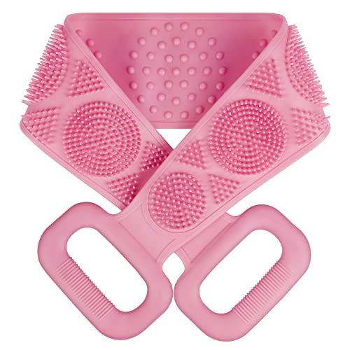 URAQT Kroppsborste Ryggskrubb, silikonbadduschborste för kvinnor och män, mjuk exfolierande kroppsskrubb med massagepartiklar, dubbelsidig användning för borttagning av smuts och massage, förlängd 70 cm (Rosa)