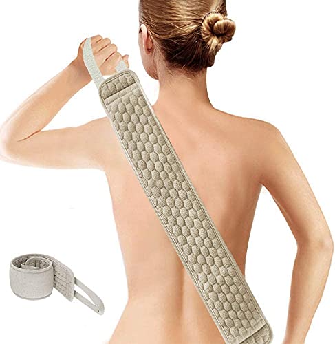 Pinkiou Loofah ryggskrubbare exfolierande ryggbrickor för dusch tillbaka exfoliatorrem bad svamp kroppsskrubbare baktvätt bälte dubbelsidig skrubbning torr ren dyna för män och kvinnor