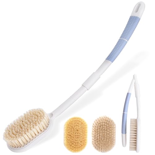 Wiseten Vikbar ryggskrubbare med långt handtag, 2-i-1 kroppsskrubbare för dusch med utbytbara borsthuvuden, duschborste med böjt handtag för kvinnor män äldre