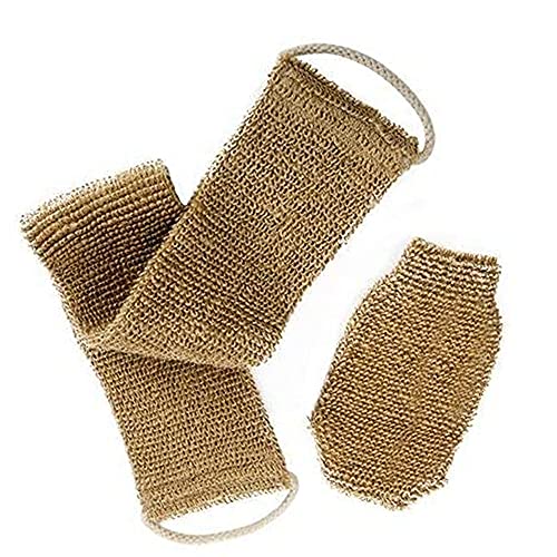 Exfolierande hampa ryggskrubbare, ryggrem med vante för bad dusch män och kvinnor, dubbelsidig tillgänglig