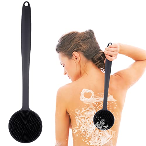 LOPHE Silikonkroppsskrubbare för dusch, dubbelsidig ryggskrubbare med långt handtag, dusch bad tvättborste för kvinnor män dusch spa exfolierande massage (svart)