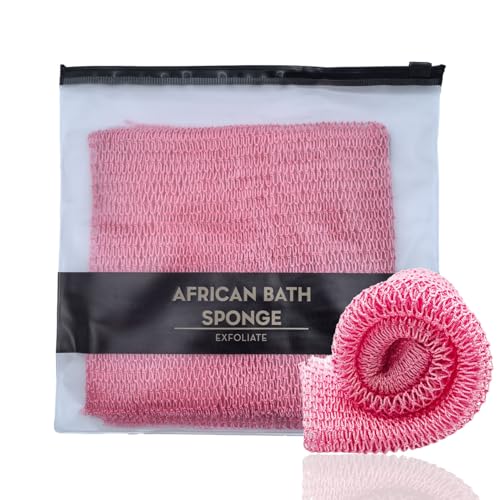 XIANZANDER Afrikanskt nät svamp autentisk, afrikanskt exfolierande nät, afrikansk exfolierande svamp, djuprengöring skrubber ryggskrubbare för män och kvinnor 75 × 30 cm (rosa)