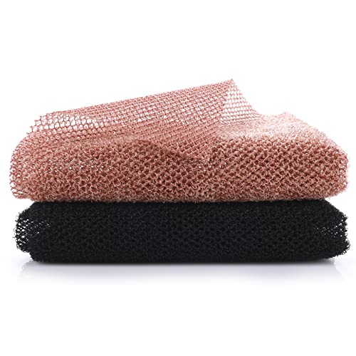 WLLHYF Afrikanska exfolieringsnät, ryggskrubbare i nylon, duschduk, kroppsrengöring, spa, massage, badhandduk, djuprengörande, afrikansk nätsvamp för kvinnor, män, dusch, 2 st (svart, kaffefärgad)