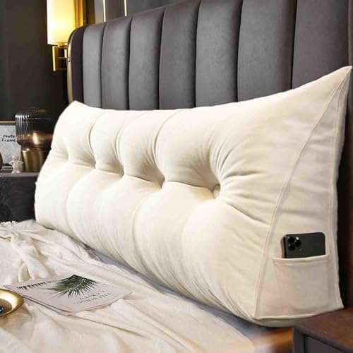 RAKTOV Ryggstödskudde triangulär huvudgavel kudde, stor dubbel läskudde för dagbädd, kil dagbädd kudde stödkudde med avtagbart överdrag, 120 x 50 x 20 cm, beige