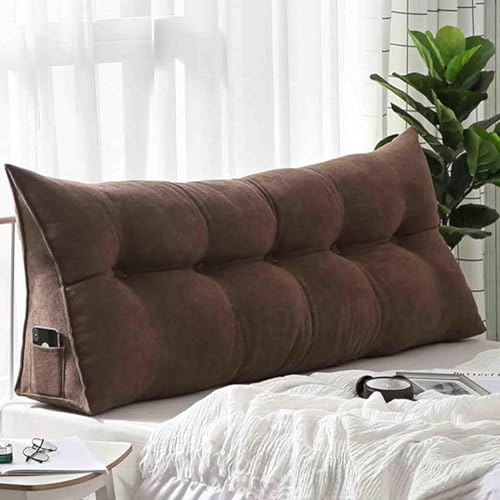 Mjuk triangulär sängkudde, mysig och stor ryggstödskudde för säng/soffa/tatami, läskudde för vuxna och barn, TV-kudde, tvättbart överdrag (120 x 50 x 20 cm, brun)