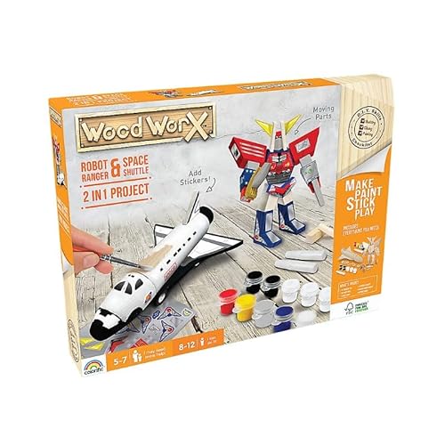 Wood Worx - trämodeller att bygga och anpassa - skapa 2 modeller rymdfärja + robotförvaring - målningar och klistermärken ingår - kreativ fritid - FSC trä - presentidé från 5 år