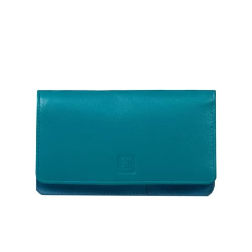 Sło⤞ Torbalski damväska i läder, färgglad äkta läder, rymlig handväska, blå, tyst skugga-Klematisblå, 16 x 9 x 3 cm