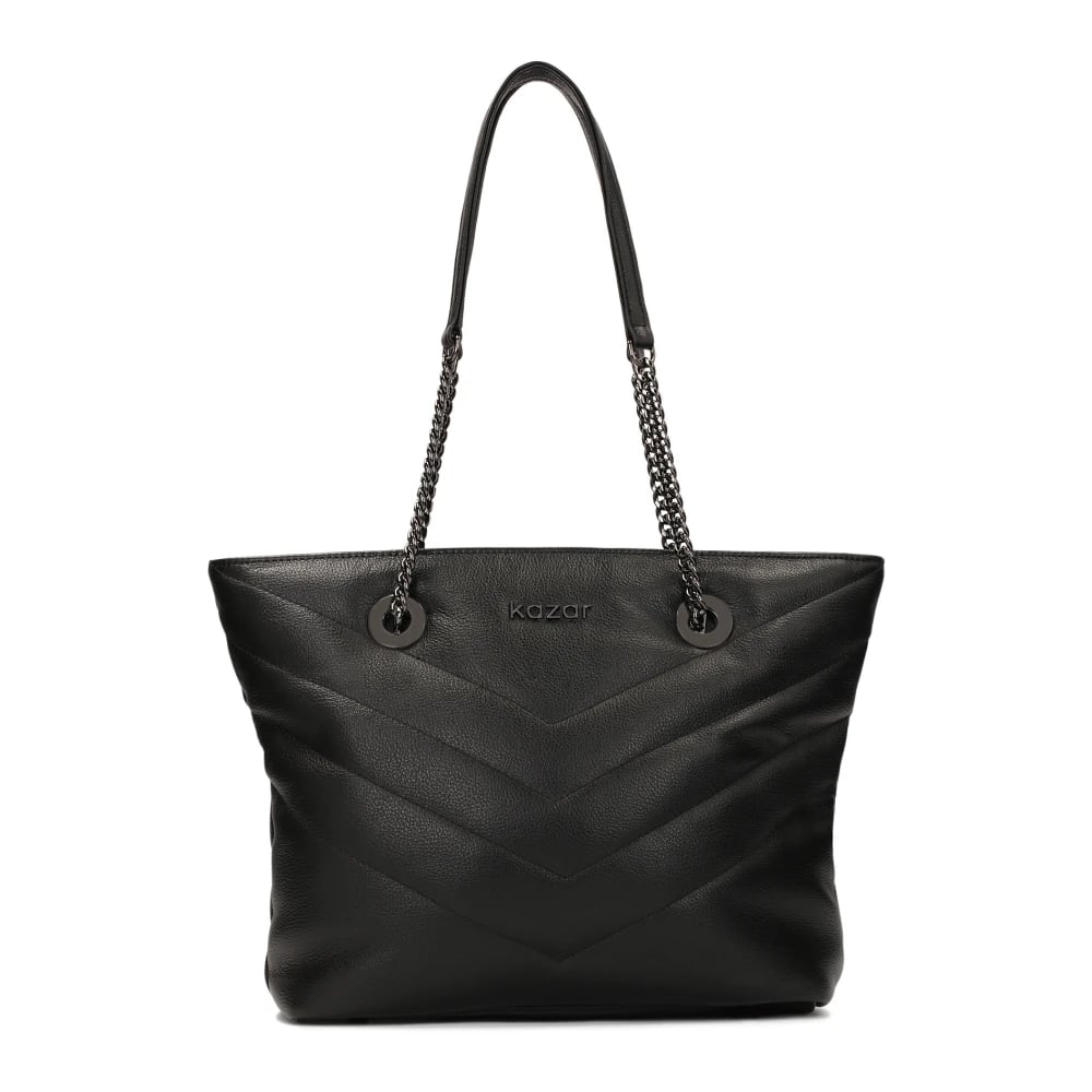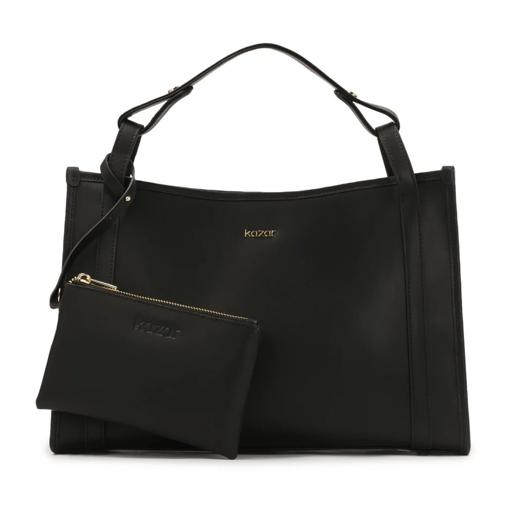 Kazar, Väskor , Dam, ONE Size, Läder, Svart rymlig handväska med necessär