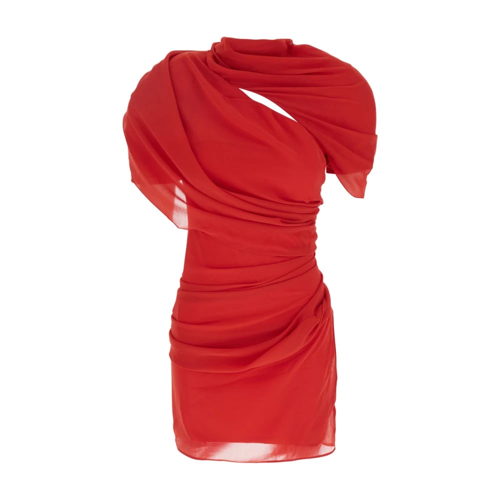 Jacquemus, Klänningar , Dam, XS, Röd Rynkad Klänning med Urklipp