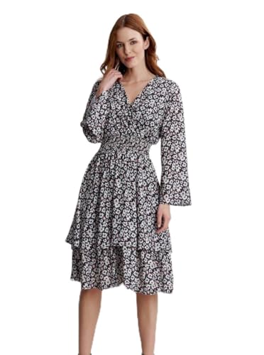 Alex kvällar dam bantning kort rynkad klänning med volangkjol (liten och normal storlek)