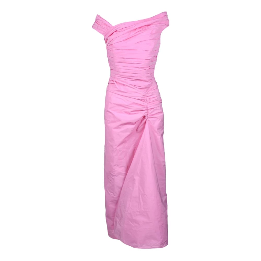 Solace London, Klänningar , Dam, 2Xs, Rosa Rynkad Asymmetrisk Hals Klänning
