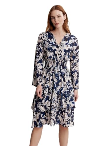 Chi Chi London långärmad blommig rynkad figurnära midi-klänning för kvinnor cocktail, BLÅ, 38 SE