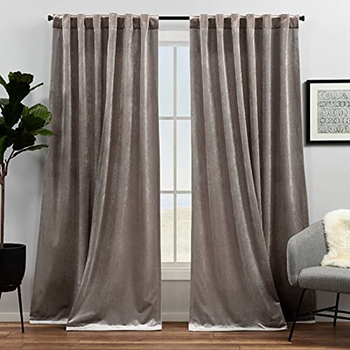 Exclusive Home Gardiner med rynkband för att dölja gardinstång, tunga, ljusfiltrerande, 2 st, 132 cm x 243 cm, gråbrun (Taupe)