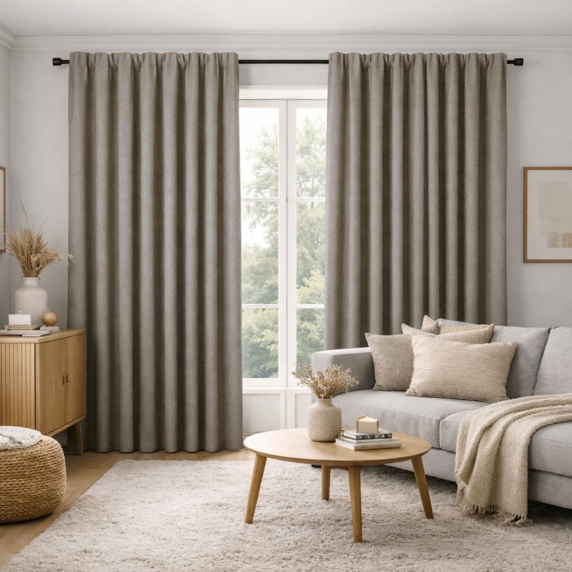 Långt gardin - 1 st. färdigsytt gardin 140x245 cm - Ljusgrå - Tjockt gardin / ljusdämpande gardin - Nordstrand Home gardinlängder med rynkband